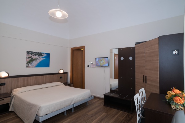 La camera Family dispone di bagno privato con doccia, phon, tv color sat LCD con lettore DVD, telefono diretto, cassaforte, climatizzatore mobile.