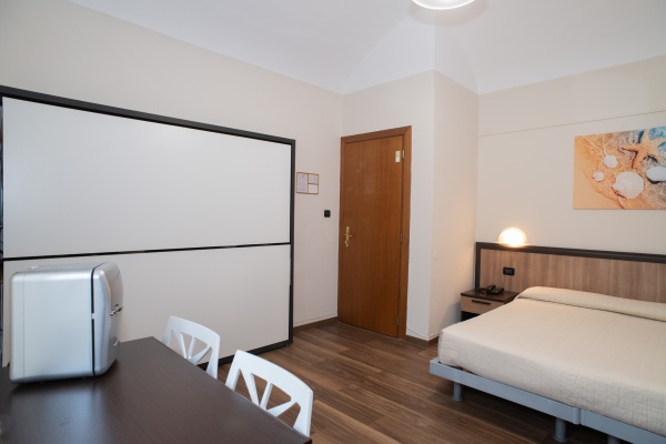 Tutte situate al 4°piano e servite, come le altre camere, da ascensore, dispongono di bagno privato con doccia, phon, telefono diretto, cassaforte, TV Sat LCD, mini frigo (contenuto non fornito), climatizzatore split a parete regolabile con proprio telecomando.